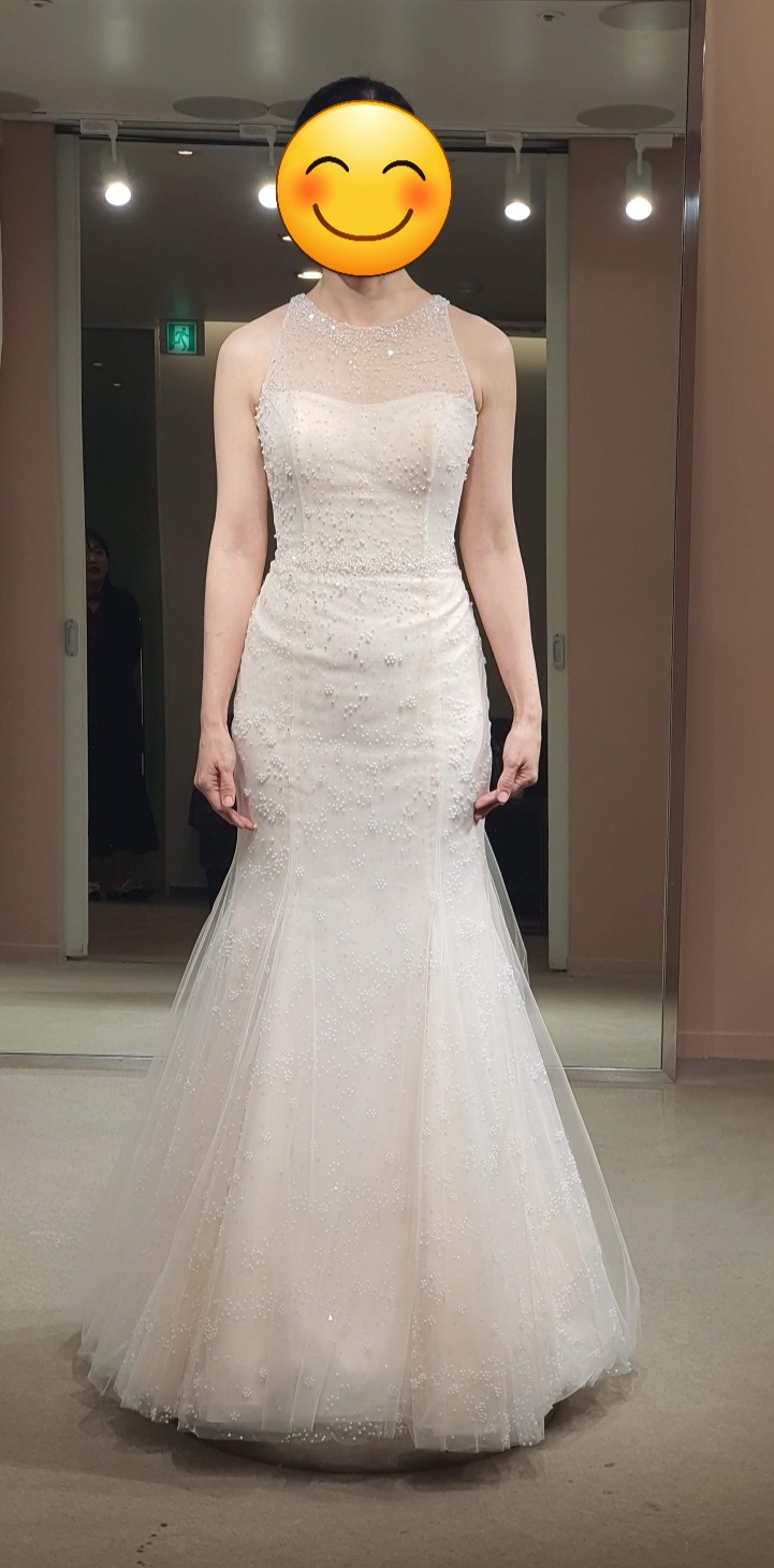 본식 드레스는 네 벌을 입어봤지만 투어 때 홀딩했던 두 벌이 역시 제일 마음에 들었다. 둘 다 미카도 실크고 풍성 스타일이다. 하나는 홀터넥인데 우아한 느낌이고, 다른 하나는 7부 보트넥인데 클래식의 전형이다. 둘 다 정말 마음에 드는데, 전자는 뒷모습이 아쉽고, 후자는 너무 클래식해서 살짝 밋밋한 느낌이었다. 대신 후자는 v라인으로 적당히 파인 깔끔한 뒷모습이 참 예뻤다.