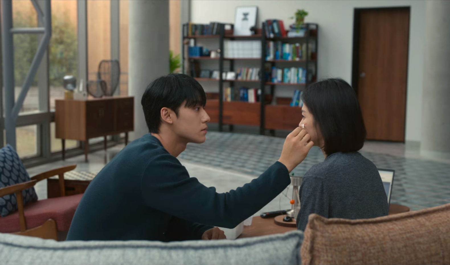 그러나 역설적으로 둘은 그렇기에 더욱 서로에게 서로여야만 하는 애틋한 존재이기도 하다. 다시 또 돈에 넘어가 딸을 팔아버린 엄마 때문에 뺨에 상처를 얻고 마음에는 더 큰 상처를 입어서, 동은이 무너져 내린 날, 여정이 동은을 찾는다. 그리고 더 다가가고 싶은 마음을 누르면서, 옆에 있다는 게 딱 티가 날 정도로만, 그림자로서 동은의 곁을 지킨다. 다음날 여정이 동은의 뺨에 약을 발라주면서, 둘은 또 조곤조곤하지만 달달하게 티키타카 대화를 한다.