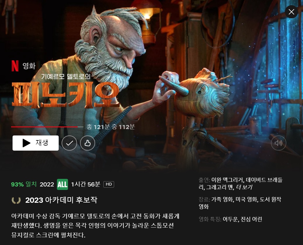 기예르모 델토로의 피노키오 소개 화면 (사진출처: 넷플릭스)