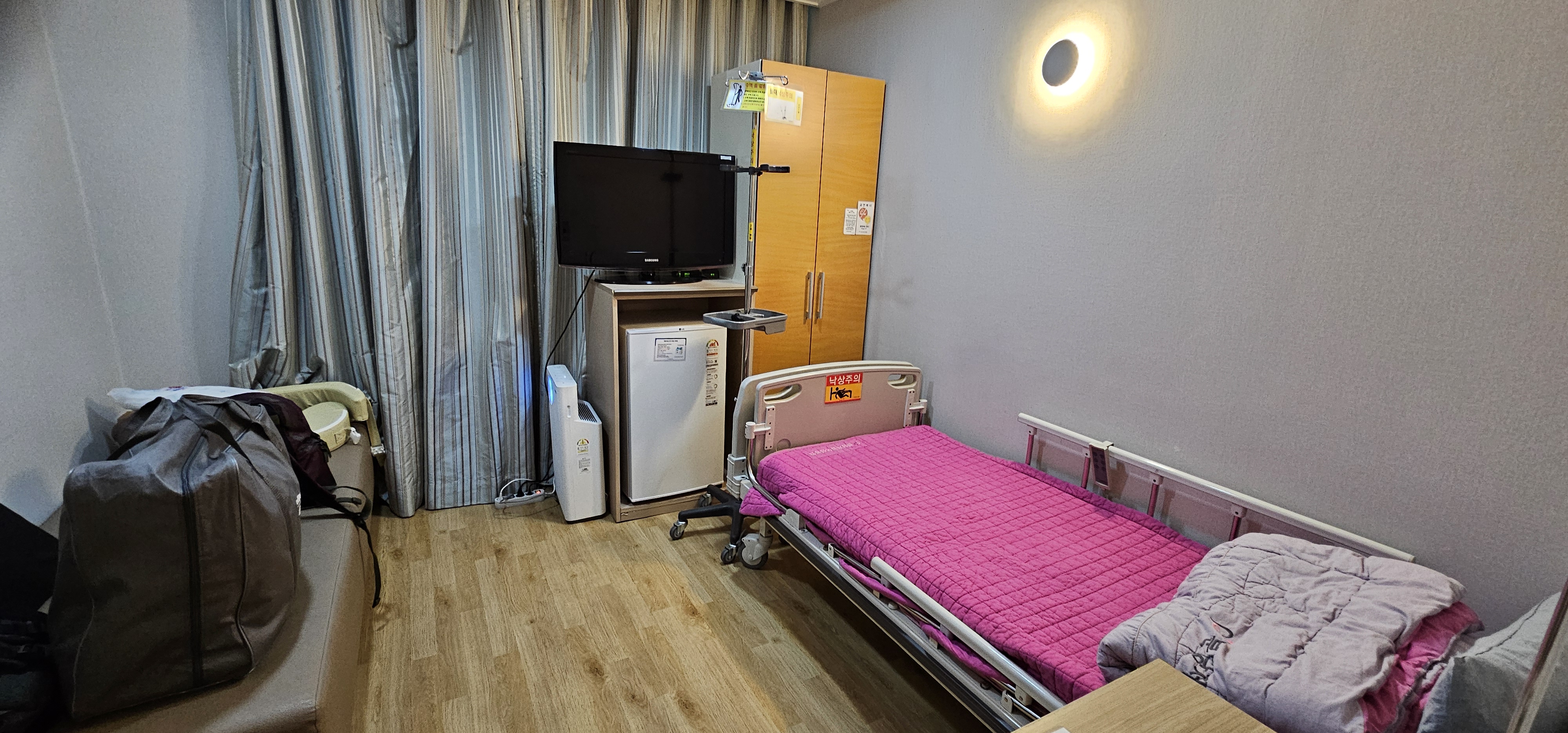 남편이 저녁 식사 할 거 사러 나가는데, 나는 밖에 나갈 순 없어서 혼자서 폴대 잡고 또 병원 복도 열심히 걸었다. 유착도 막고, 회복도 해야, 이따 저녁에 아기 보러 즐거이 갈 수 있을 테니!