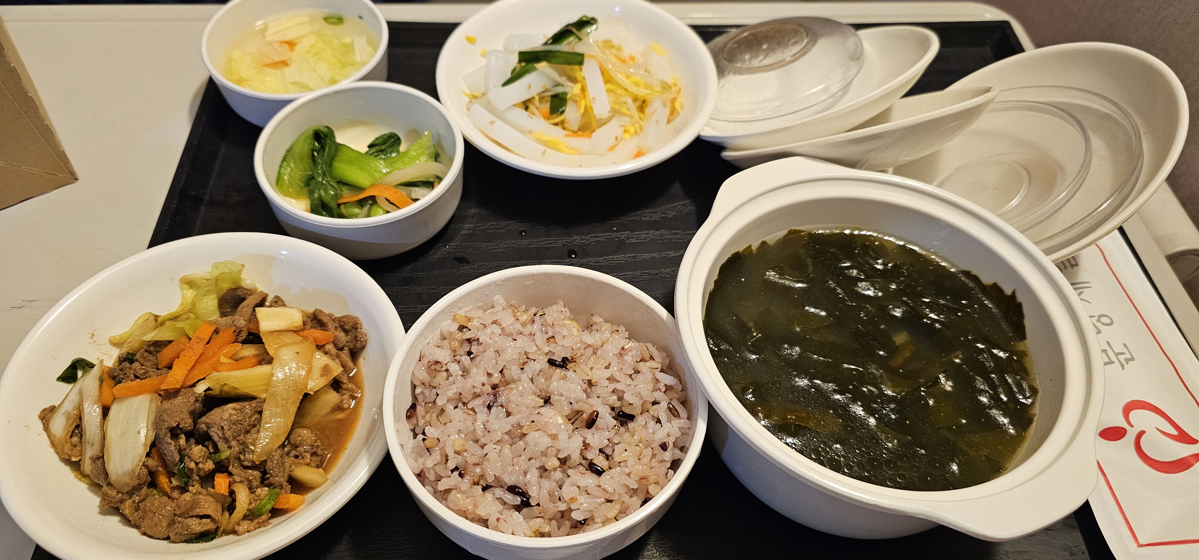 아, 전반적인 병원밥에 대해 첨언하자면, 산모식인만큼 미역국이 많이 나오고 맛은 그럭저럭 괜찮다. 원래 입맛 까다롭지 않은 편이기도 하고, 수술했고 모유수유도 할 생각이니 건강하게 먹는 게 좋은 거란 생각도 있어서 병원밥 감사히 잘 먹었다. 남편은 주로 밖에서 카레, 김밥, 쉑쉑버거 등을 사와서 병실에서 같이 먹었는데, 한 두입 나눠먹긴 했어도 굳이 뭔가 밖에 음식 먹고싶단 생각도 안 들더라. 가끔 모자동실 길게 할 땐 남편도 병원밥을 주문해서 먹었다.